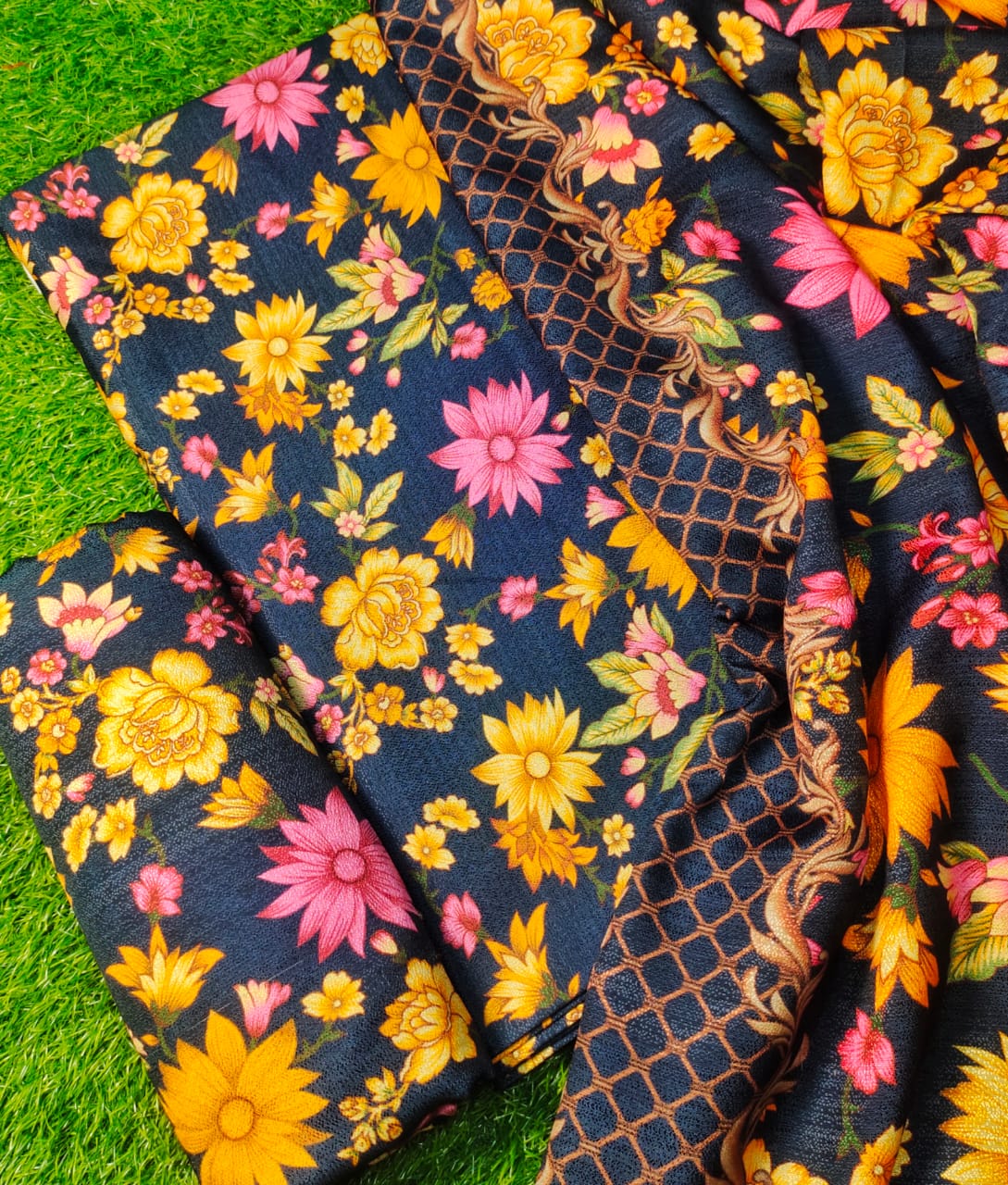 3PC Unstitched Printed Karandi Shirt with Printed Karandi Dupatta and Same Printed Trouser