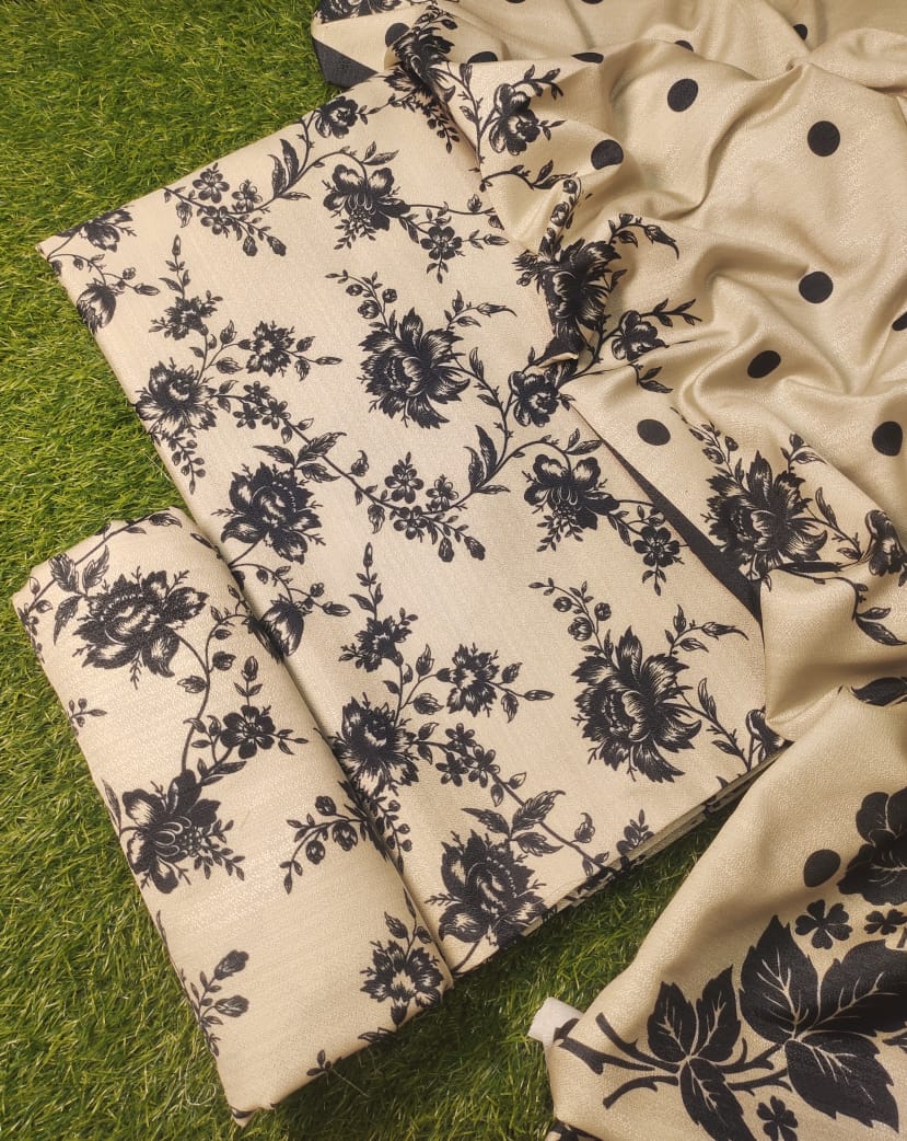 3PC Unstitched Printed Karandi Shirt with Printed Karandi Dupatta and Same Printed Trouser