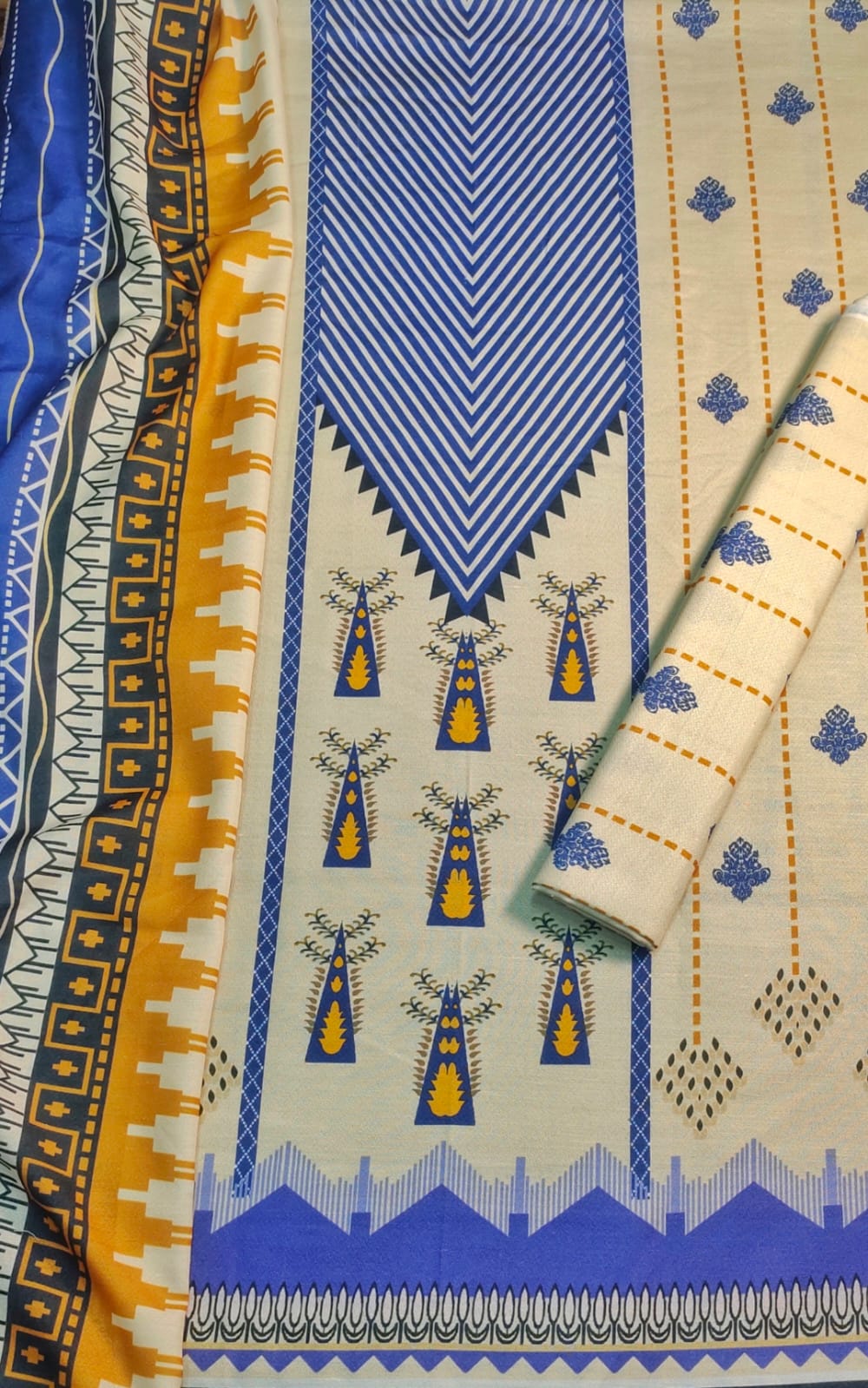 3PC Unstitched Printed Karandi Shirt with Printed Karandi Dupatta and Same Printed Trouser