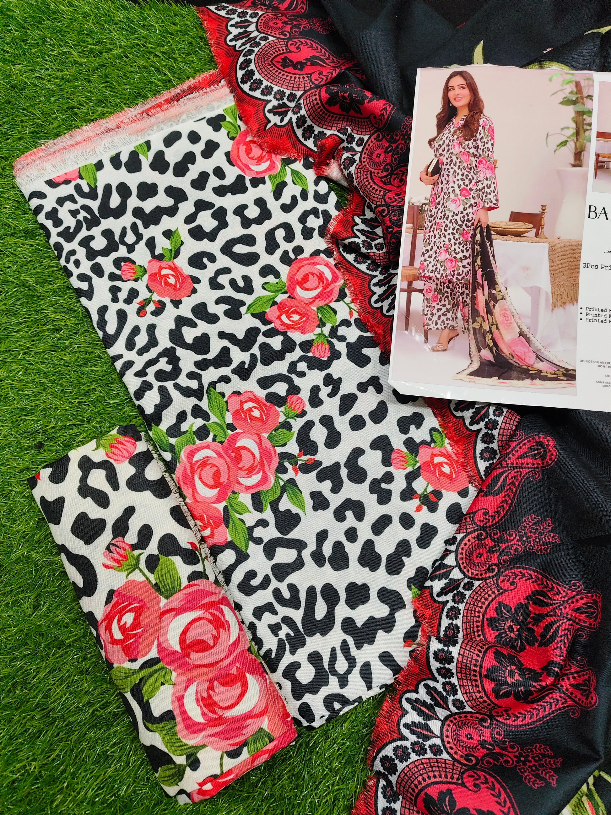 3PC Unstitched Printed MARINA Shirt with Printed MARINA Dupatta and Same Printed Trouser