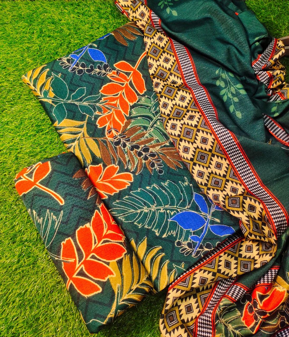 3PC Unstitched Printed Karandi Shirt with Printed Karandi Dupatta and Same Printed Trouser