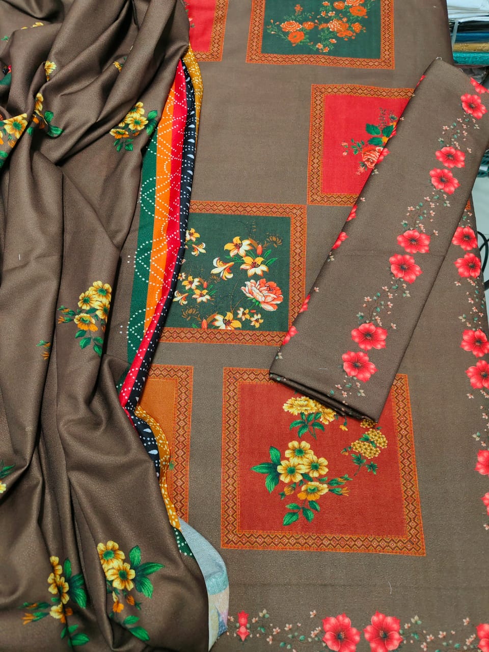 3PC Unstitched Printed Karandi Shirt with Printed Karandi Dupatta and Same Printed Trouser