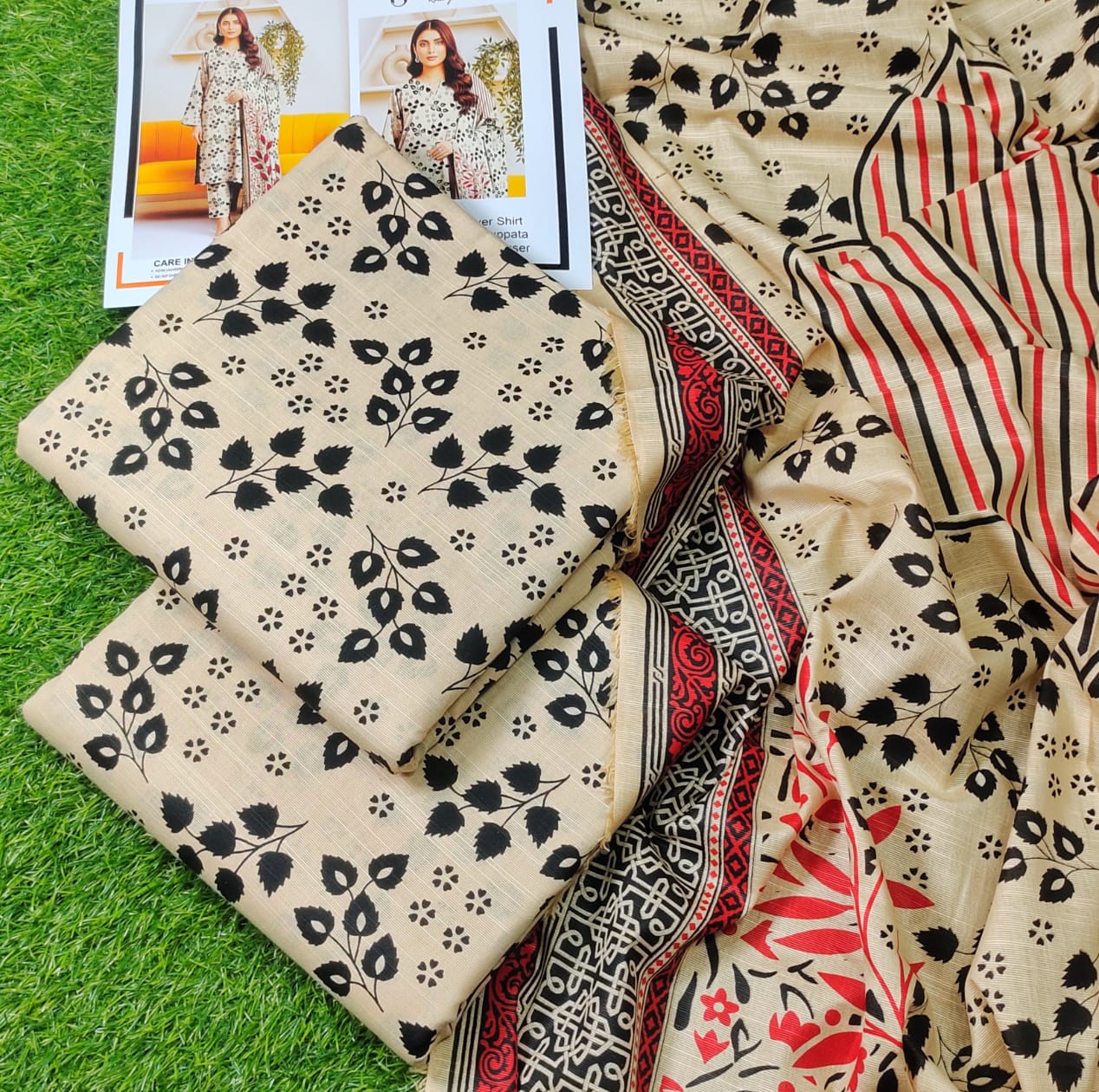 3PC Unstitched Printed KHADDAR Shirt with Printed KHADDAR Dupatta and Same Printed Trouser
