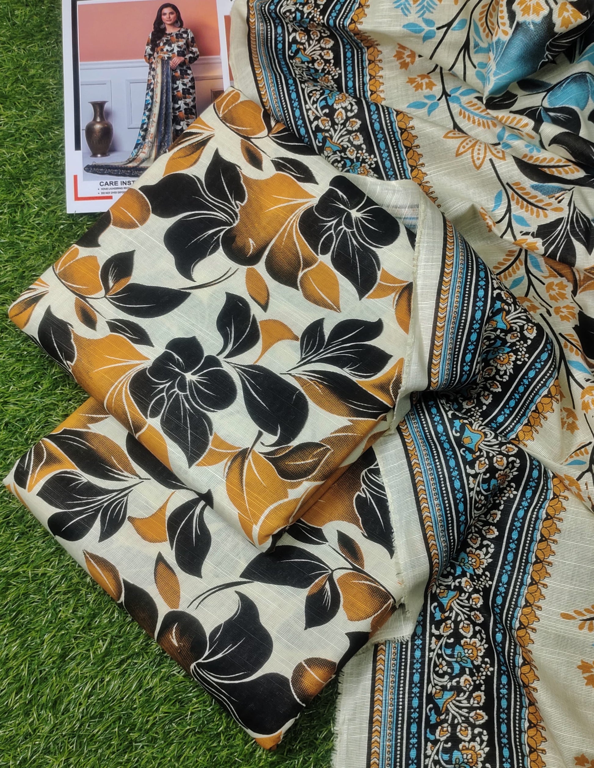3PC Unstitched Printed KHADDAR Shirt with Printed KHADDAR Dupatta and Same Printed Trouser