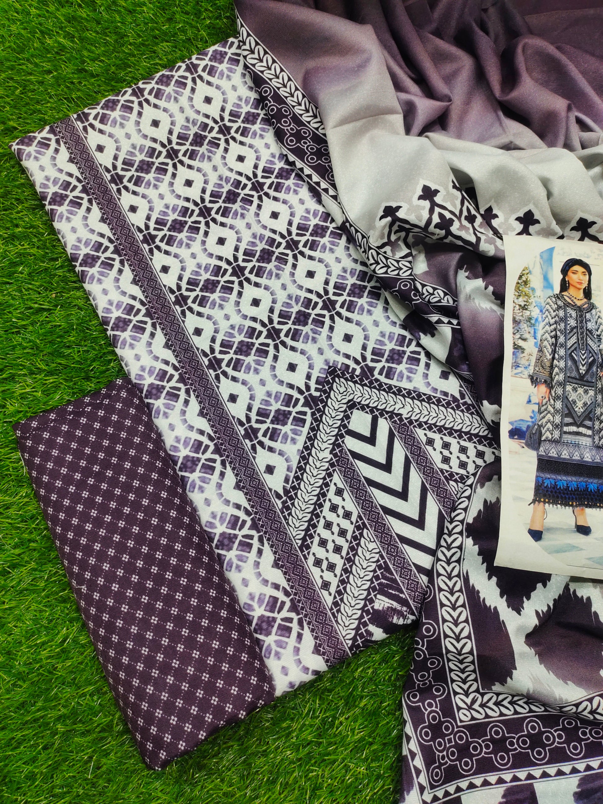 3PC Unstitched Printed Karandi Shirt with Printed Karandi Dupatta and Same Printed Trouser