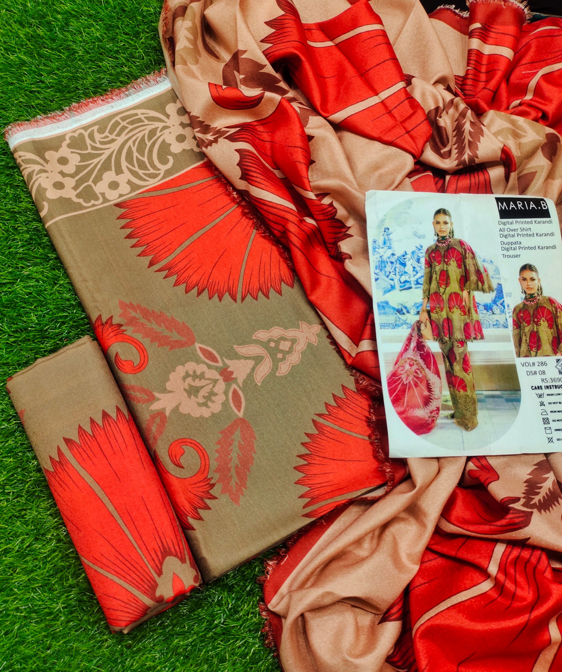 3PC Unstitched Printed Karandi Shirt with Printed Karandi Dupatta and Same Printed Trouser