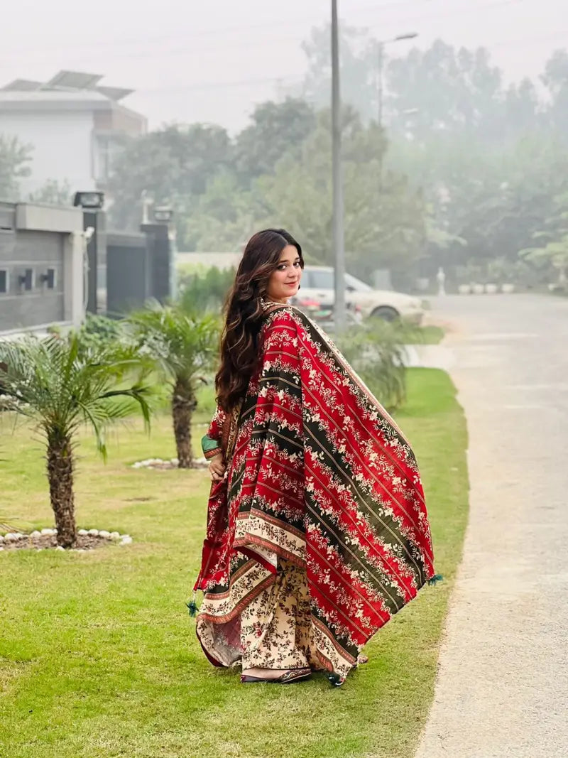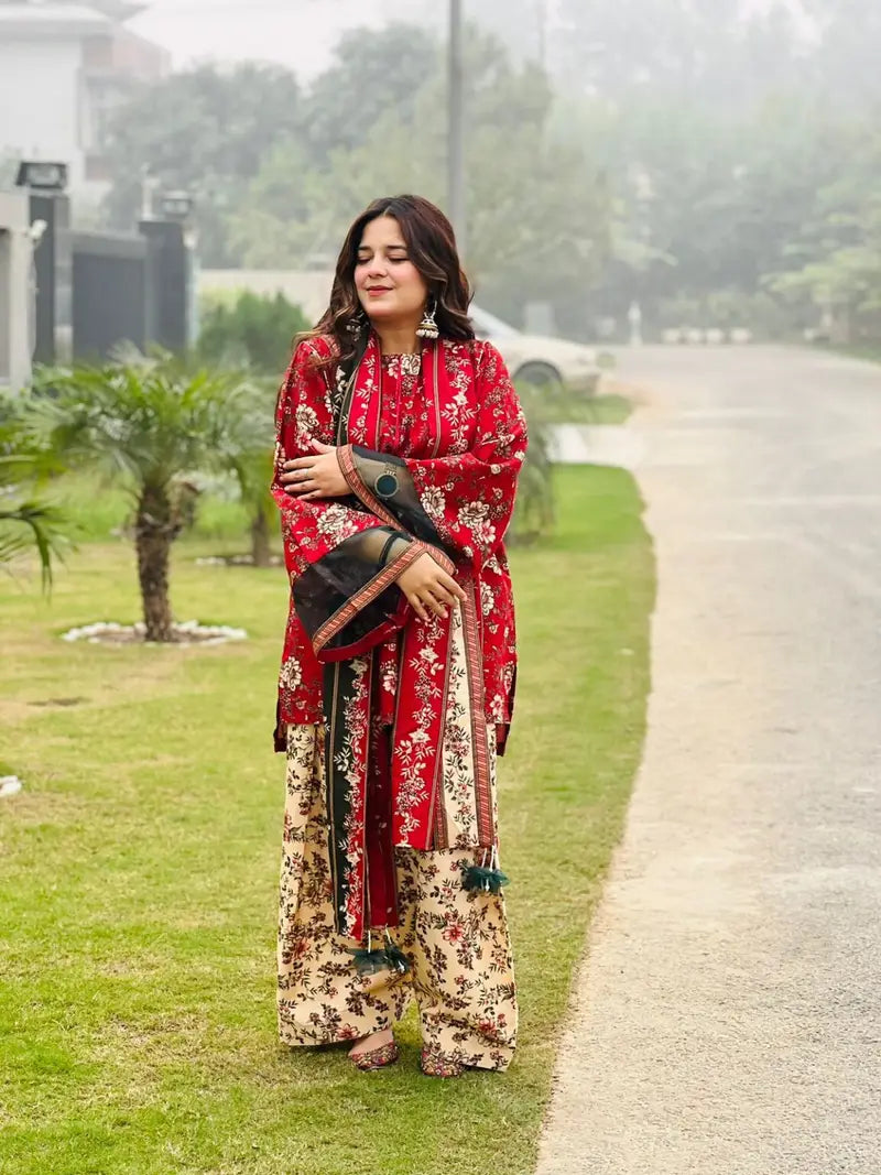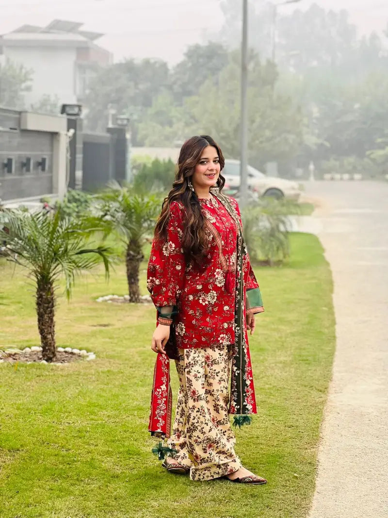 3PC Unstitched Printed MARINA Shirt with Printed MARINA Dupatta and Same Printed Trouser