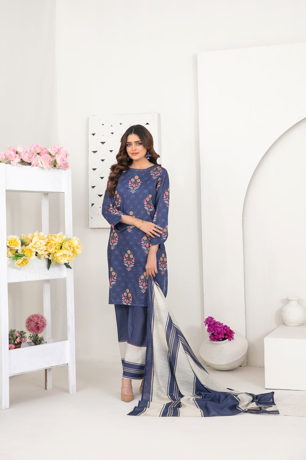 3PC Unstitched Printed MARINA Shirt with Printed MARINA Dupatta and Same Printed Trouser