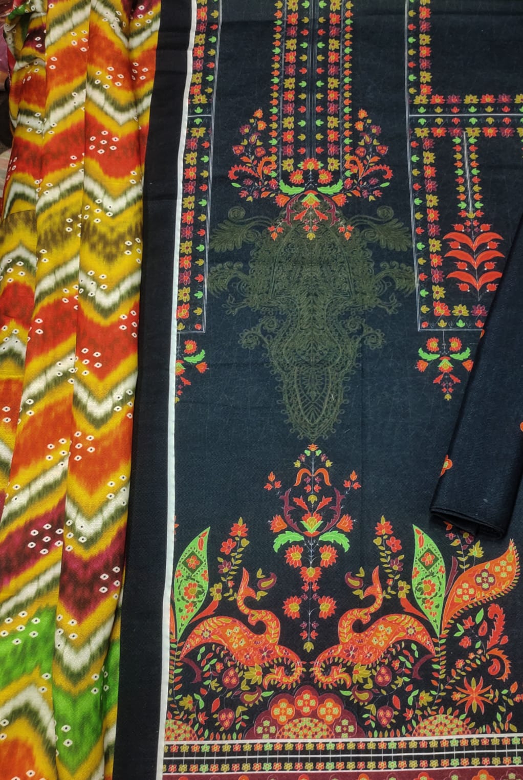 3PC Unstitched Printed Karandi Shirt with Printed Karandi Dupatta and Same Printed Trouser