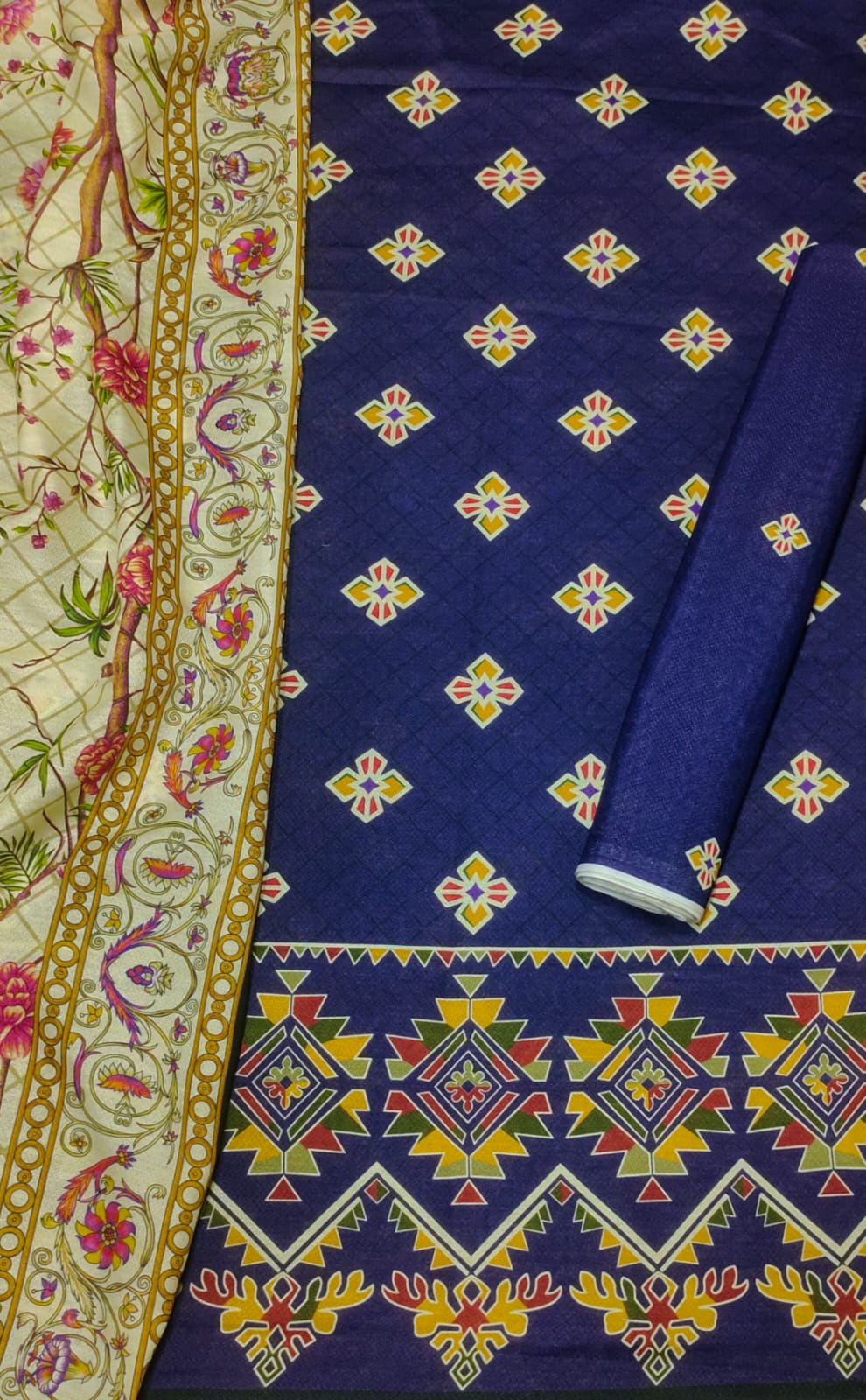3PC Unstitched Printed Karandi Shirt with Printed Karandi Dupatta and Same Printed Trouser